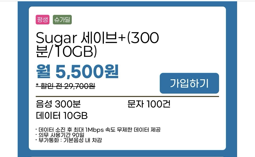 Sugar 세이브+(300분/10GB)